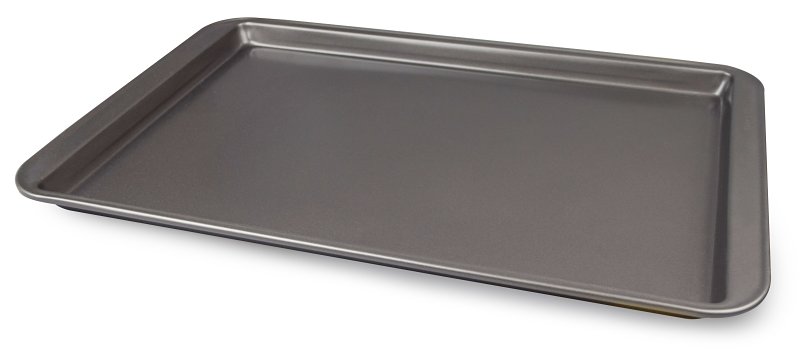 You'll use this versatile baking sheet for much more than cookies. It's ideal for everything from roasted vegetables and hot hors d'oeuvres to your favorite frozen foods. This BakeIns large 17-1/4 x 11-1/8 in non-stick baking pan.
