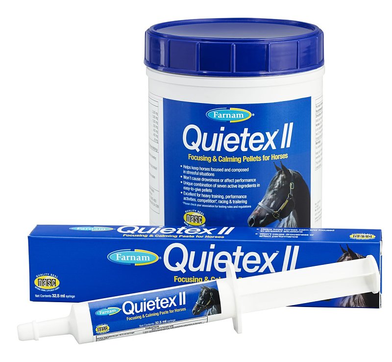 Nervous, stressed-out horse. Your solution is here. Quietex⢠II supplement helps your horse be calm, focused and aware. This trusted formulation of stress-relieving ingredients calms without drugs.Item Specifications
