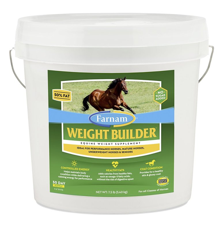 Sometimes less is more. Like when your horse needs additional calories to help maintain his weight or energy for performance, feeding more grain isn't always the answer. Weight Builder⢠equine weight supplement adds easily digested calories and performance-level energy to help horses reach their ideal weight and performance demands without the risk of digestive upset associated with feeding extra grain.Item Specifications