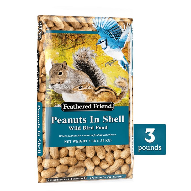 Feathered Friend Wild Bird Food, Net Content: 3 lb, Bag, Attracts: Jays, Nuthatches, Squirrels, Wrens, Ingredients: Shell PeanutsItem Specifications