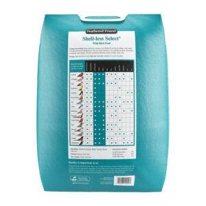 Feathered Friend Shell-less Select, Seed Form, 20 lb Net Content, Bag Container, Suitable Feeder Type: Hopper, Platform, Tube, Attracts: Chickadee, Goldfinch, Nuthatch, Ingredients: Sunflower Kernels