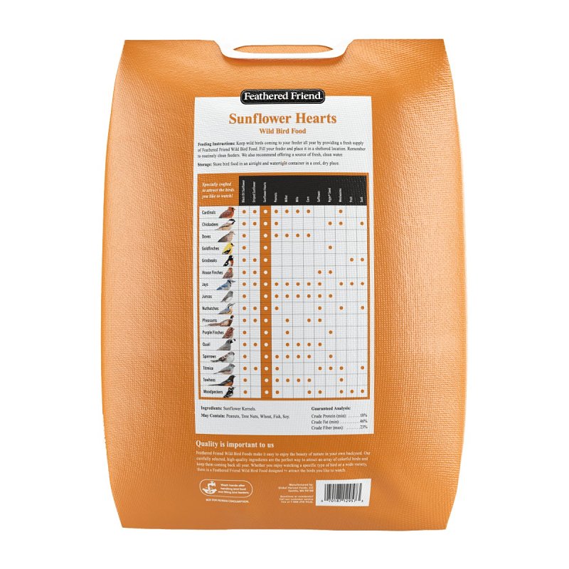 Feathered Friend Wild Bird Food, 20 lb Net Content, Bag Container, Special Diet: High-Energy, High-Protein, Ingredients: Sunflower HeartsItem Specifications