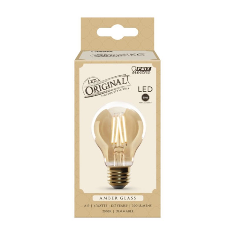 Enjoy all the benefits of advanced LED energy-saving technology with the dimmable Feit Electric AT19 4 W the original vintage LED light bulb. It produces a light output of 300 lumens and uses 4 W of electricity. Get instant on to full brightness with relatively cool running performance. The original vintage LED light bulbs have an average life of 15,000 hr/13.7 years are RoHS compliant and are 100% mercury-free. Choose a dependable decorative bulb for residential or commercial applications.Item Specifications