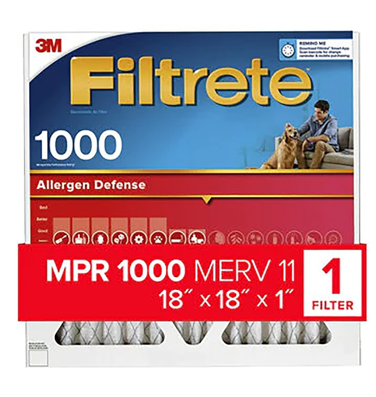 Home > Heating and Cooling > Heat and Air Conditioning > Air Filtration > Electrostatic Allergen Filters > Filtrete 9817-4 Air Filter, 18 in L, 18 in W, 11 MERV, 1000 MPR, Polypropylene Frame