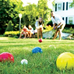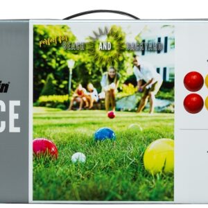 The Franklin Sports 90 mm bocce ball set is a classic outdoor game that will bring hours of fun for all ages. The set includes all you need for a day of fun six all-weather 90 mm solid molded PE balls and one 40 mm pallino. The balls include two red, two blue, two yellow and two green colors so you can differentiate your players. Easily transportable, this set can be used on grass, sand or any soft outdoor surface.Item Specifications