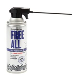 Free All Deep Penetrating Oil, Net Content: 11 oz, Aerosol Can, Clear Mist, Compositions: Carbon Dioxide, Distillates, Petroleum, Hydrotreated Light, Petroleum Oil, Oleic Acid, Methyl Isobutyl Ketone, Specific Gravity: <1, Flammability Rating: 3Item Specifications