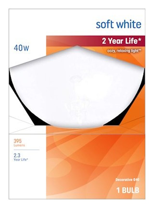 GE Globe Light Bulb, Wattage Rating: 40 W, 120 V, Lamp Shape: G40, Lamp Base: E26 Medium, Lamp Material: Glass, Lumens: 395 Lumens, Light Color: Soft White, Color Temperature: 2500 K, Average Life: 2500 hr, Dimensions: 5 in Dia, Filament Type: CC-6Item Specifications