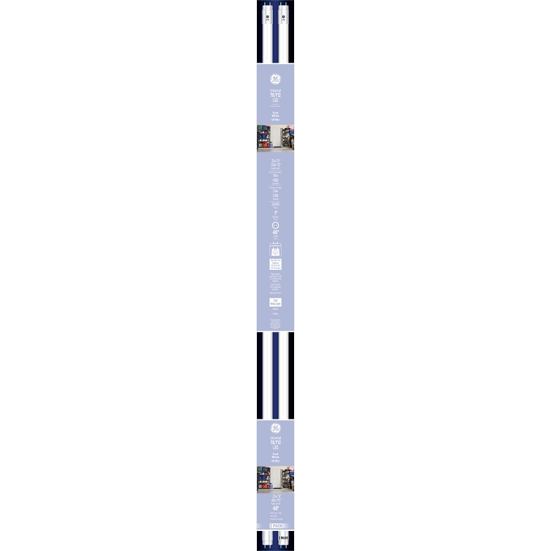 GE Industrial Solutions LED Bulb, Linear, Wattage Rating: 15 W, Lamp Base: G13, Lamp Shape: T8, Lamp Material: Glass, Lamp Finish: Frosted, Lumens: 1800 Lumens, Light Color: White, Color Temperature: 4000 K, Color Rendering Index (CRI): 80, Average Life: 36,000 hr, Dimensions: 48 in L