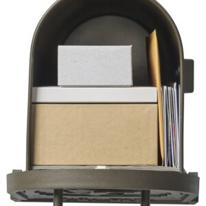 This premium mailbox features a classic look that complements virtually any residence. Its clean, crisp lines and an embossed eagle and trim add a nice flourish to the mailbox's overall appearance. The Arlington's large size is ideal for envelopes, magazines, padded envelopes and small packages. The mailbox is constructed from high-quality galvanized steel to provide a long-lasting service life. It is available in either a textured black or bronze finish, both of which are powder-coated to withstand rust and the elements.Item Specifications