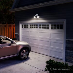 Upgrade your outdoor spaces with the hardwired switch activated security light. Effortlessly have light at your fingertips by using the wall switch located in your home. The swivel arm design allows easy adjustment of lamp heads for customized light coverage. Use 2X standard base E26 PAR38 shape 120 W max bulbs. Install effortlessly with the dual-mount system which includes all mounting hardware to give you the option to wall-mount or eave-mount and enjoy its weather-resistant, durable construction. Ideal for pathways, sheds, garages and more. Backed by a 2 year warranty, you can trust in the GLOBE ELECTRIC commitment to quality. Illuminate your surroundings confidently with this versatile security light.Item Specifications