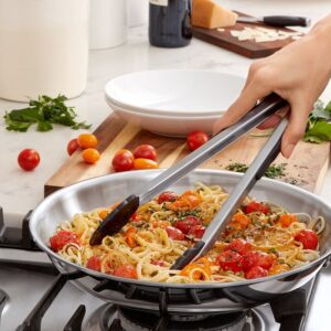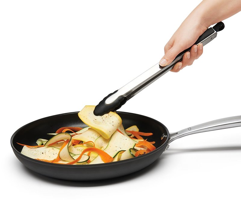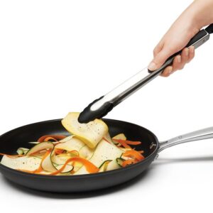 The Tongs with Nylon Heads are made of sturdy stainless steel, with soft, comfortable, non-slip grips. The scalloped nylon heads are safe for nonstick cookware and securely hold food. heat-resistant to 400 deg F. Tongs lock closed for convenient storage.Item Specifications