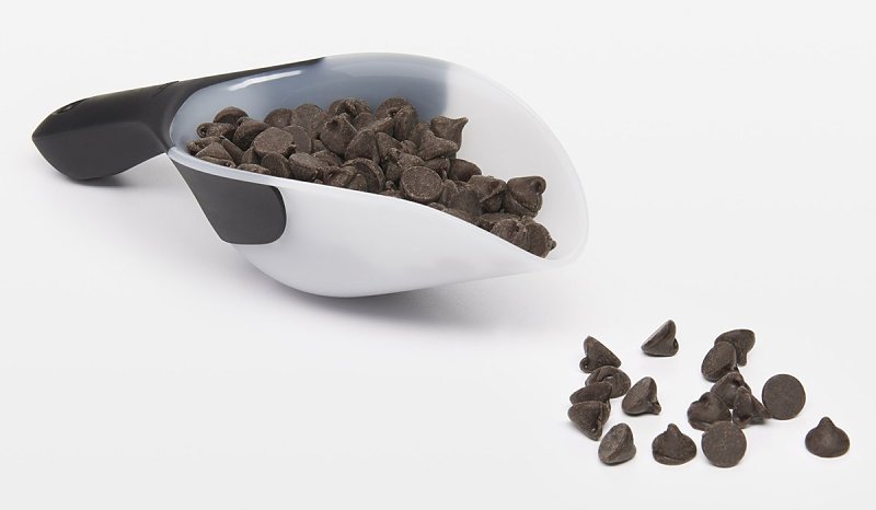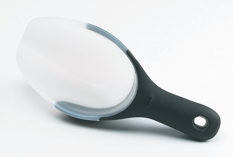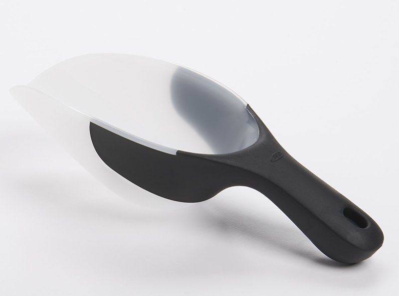 A versatile utensil that fits neatly into tight spaces. Our handy scoop is ideal for transporting everything from ice to flour, cereal and more. The compact head fits easily into all sorts of canisters and bins. Flexible for easy funneling into smaller containers. Stays comfortable to the touch even after sitting in the freezer.