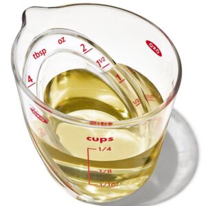Patented angled surface allows measurements to be read from above. Eliminates the need to fill, check and adjust. Standard and metric measurement markings. BPA-free. Microwave safe, do not microwave butter, fats or oils. Dishwasher-safe. Cup, tablespoon, ounce and mL measurement markings 1/4 cup capacity. Display contains 18 cups.Item Specifications