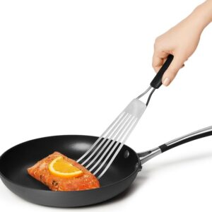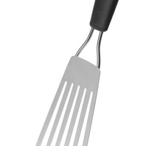 Use this handy fish turner when cooking whole fish, filets, seafood cakes and more. The beveled edge slides easily beneath foods and the slots in the head allow grease to drain. The durable, stainless steel head is oversized for larger fish and the soft handle allows for a comfortable grip.Item Specifications