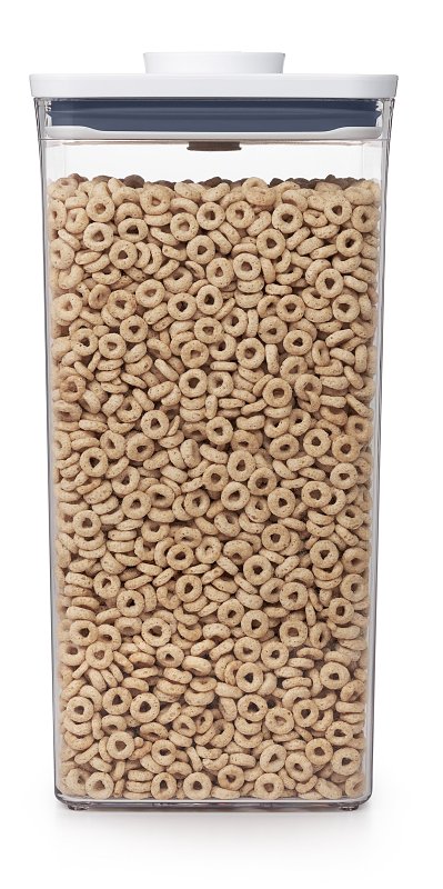 Expanding the possibilities of pantry organization, airtight, space-efficient and stackable storage solution ideally sized for cereal or snacks. With new shapes, sizes, must-have accessories and dishwasher-safe construction, brand-new pop containers are an organizer's dream. Made to stack together and featuring our signature push-button airtight seal, they are carefully calibrated to keep everyday household staples like flour, sugar, coffee, cereal, oatmeal, coffee, grains, pasta and spices fresh and close at hand. With curved corners for smooth dispensing, handy fill lines and durable, BPA-free construction, pop containers help you take tidying to the next level. Use them anywhere you crave organization the possibilities are endless. For best results, always use the button to open and close. Do not carry pop containers by the lid.