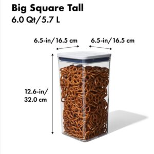 Good Grips POP 11233400 Food Container, 6 qt Capacity, Plastic, Clear, 6-1/2 in L, 6-1/2 in W, 12.6 in H