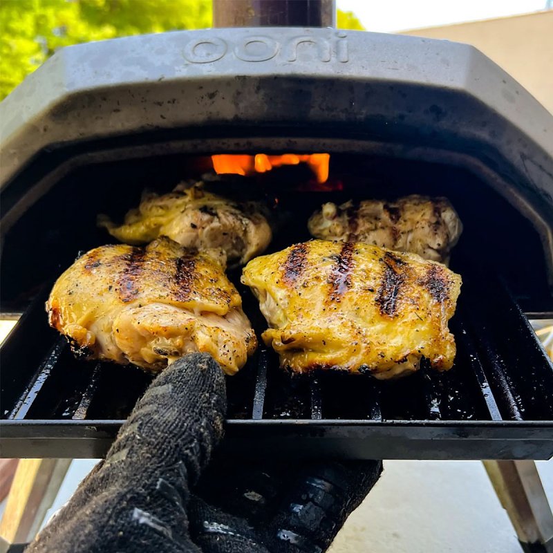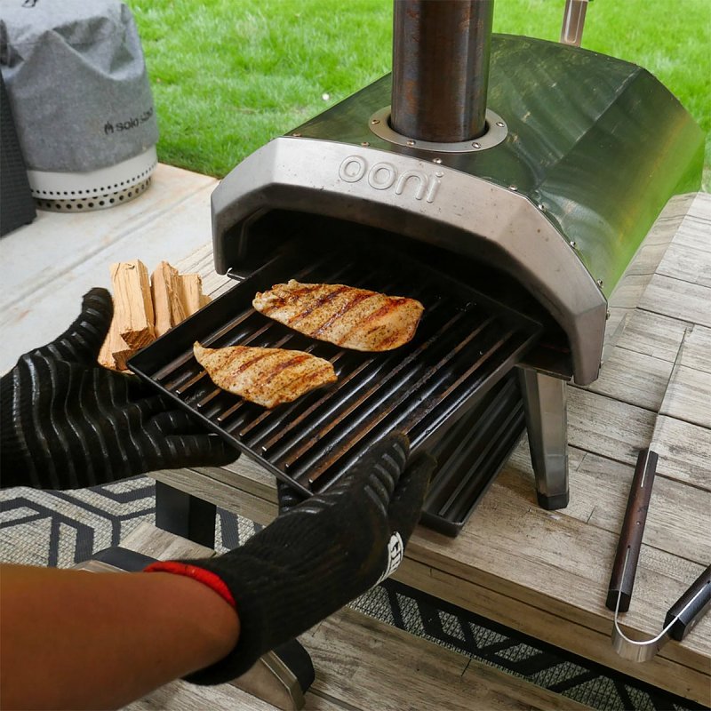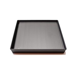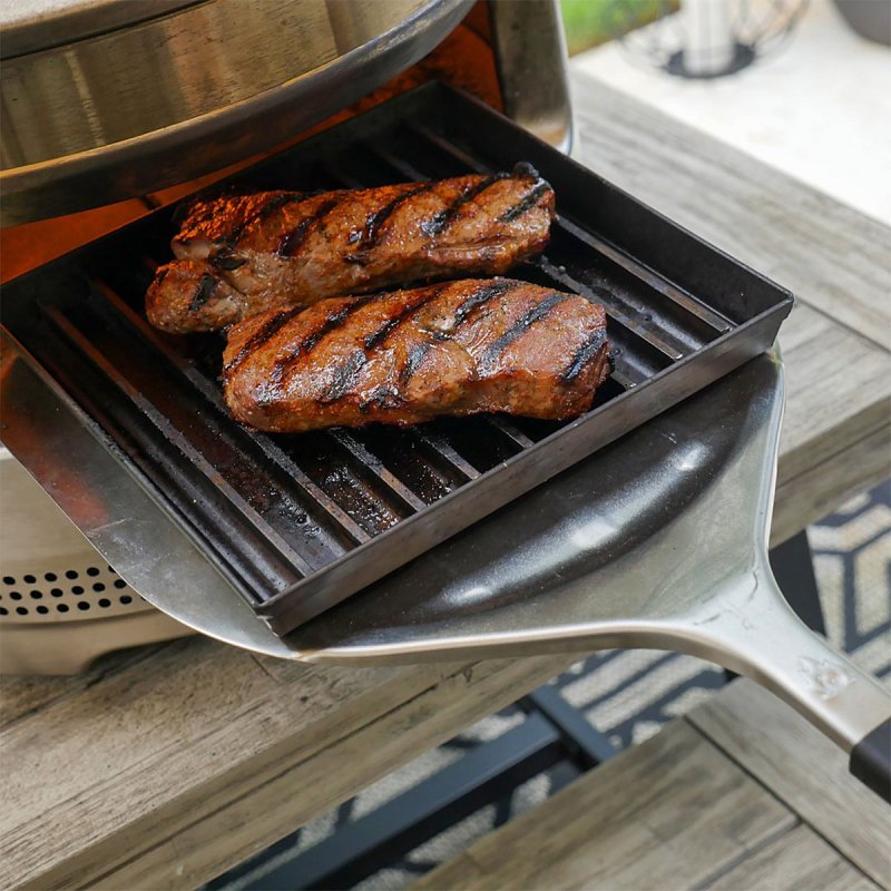 The GrillGrate for pizza + indoor ovens is a two-piece system that allows you to use your pizza oven (or your regular oven!) to get the ideal sear and juiciest food with no mess. The set consists of a 9-1/4 x 9-3/8 in patented hard anodized aluminum GrillGrate and a 10 x 10 in hard anodized aluminum baking pan. Simply set the GrillGrate into the pan, preheat your pizza stone for 5 to 10 min and get cooking.