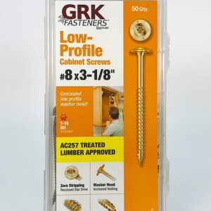 Home > Fasteners > Nuts Bolts Screws > Screws > Interior Moulding Trim Screw > GRK Fasteners 12083 Cabinet Screw, #8 Thread, 3-1/8 in L, Coarse Thread, Washer Head, Star Drive, Steel, Yellow Zinc