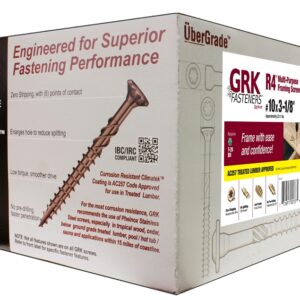 GRK Fasteners R4 Framing and Decking Screw, Thread Size: #10, 3-1/8 in L, Head Type: Round, Drive Type: Star, Steel, Package Quantity: 1500 BX, Multi-Purpose, Thread Length: 2.087 in, Drive Size: T-25, Applicable Materials: Cement, Fiber Board, Melamine, Particle Board, Plastic, Sheet Metal, WoodItem Specifications