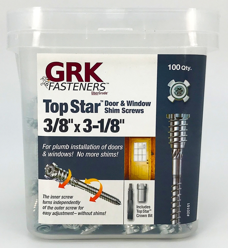 GRK's adjustable Top Starâ⢠shim screw, is in fact a screw within a screw that allows you to install wooden doors or windows without the use of shims. The quick and easy system reduces labor and allows for hassle free adjustment to ensure plumb installation.