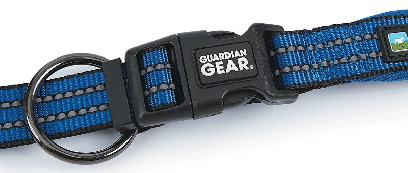 Guardian Gear® reflective nylon o-ring collars are constructed with durable high-quality nylon with reflective stitching and high-tensile force plastic fittings. The secure placement of the fully welded O-Ring allows for easy attachment of a leash and is more secure. Made of durable nylon, with full-length reflective tape that lights up brightly in headlights or flashlights. Collars are padded for comfort and adjustable with contoured plastic buckles.Item Specifications