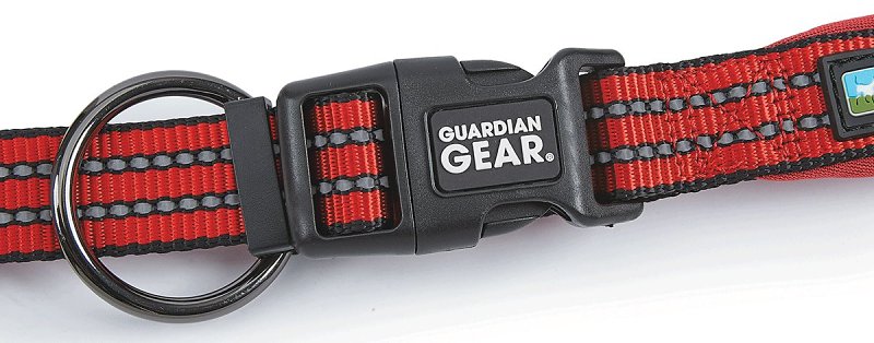 Guardian Gear® reflective nylon o-ring collars are constructed with durable high-quality nylon with reflective stitching and high-tensile force plastic fittings. The secure placement of the fully welded O-Ring allows for easy attachment of a leash and is more secure. Made of durable nylon, with full-length reflective tape that lights up brightly in headlights or flashlights. Collars are padded for comfort and adjustable with contoured plastic buckles.Item Specifications