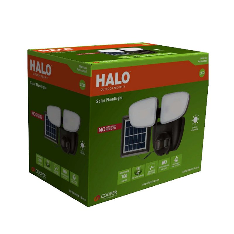 Home > Electrical > Lighting and Ceiling Fans > Light Fixtures > Flood Security Lighting > Flood Led Integrated > Halo SLFS07AM2B Motion Solar Security Light, 50 W, 2-Lamp, LED Lamp, Bright White Light, 700 Lumens
