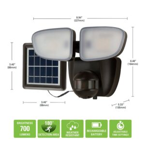 Halo SLFS07AM2B Motion Solar Security Light, 50 W, 2-Lamp, LED Lamp, Bright White Light, 700 Lumens