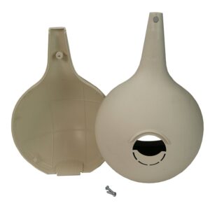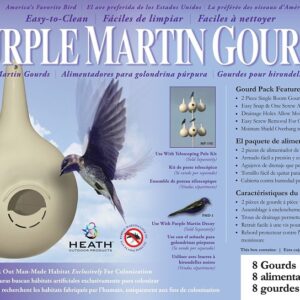 The easy-to-clean Two-Piece Purple Martin Gourds are lightweight, off-white plastic for maximum cooling inside. Each gourd is equipped with a starling-resistant entrance that can be removed if desired. The entryways are molded with rain deflectors and drainage holes in the base help prevent water buildup.