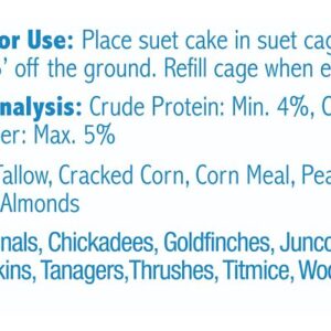 Heath Wild Bird Seed, Crafted Suet, Cake, Net Content: 11.75 oz, Pack, Attracts: Colorful Songbirds, Woodpeckers, Ingredients: Corn, Sunflower Seeds, Chopped Almonds