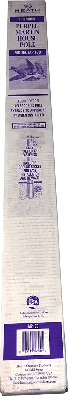 Heath Outdoor Products 15 ft Purple Martin Gourd pole. The galvanized steel, telescoping pole is designed in 3 sections with keylocks for added stability. Four gourd hanging rods, mounting hardware and mounting instructions are included. Fits all Heath Purple Martin Gourds.Item Specifications