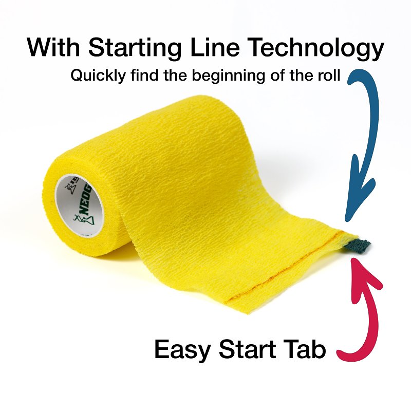 Self-adhesive, maintains original shape and size, offers Starting Line technology for ease of unrolling. Provides consistent lightweight compression, does not tighten with wear. 8 lb tensile strength.Item Specifications
