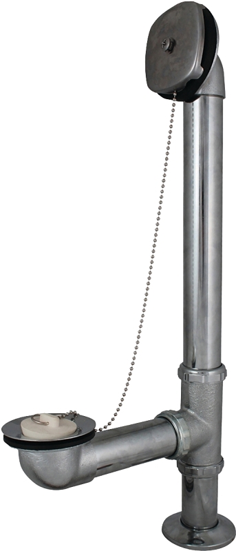 For exposed tubs. 1-3/8 in OD, 22 ga brass tube. Cast brass elbows, tee and nuts. Complete with chain and rubber stopper. Satin Polished Chrome finish strainer.Item Specifications