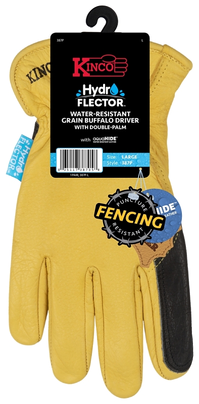 Kinco Gloves, Size: M, Buffalo Leather, Gold, Keystone Thumb, Elastic Cuff, Resists: Abrasion, Puncture, WaterItem Specifications