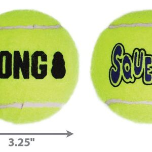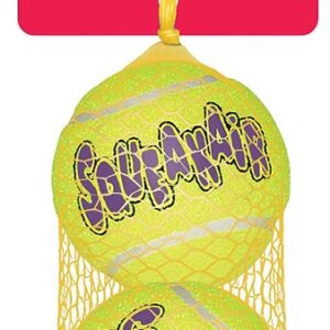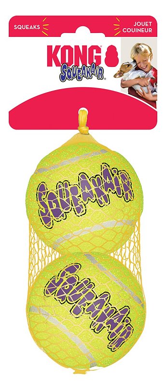 The Kong SqueakAir® ball combines two classic dog toys, the tennis ball and the squeaker toy to create the perfect fetch toy. Our durable, high-quality SqueakAir® tennis ball will not wear down your dog's teeth. It's made with a special non-abrasive felt.