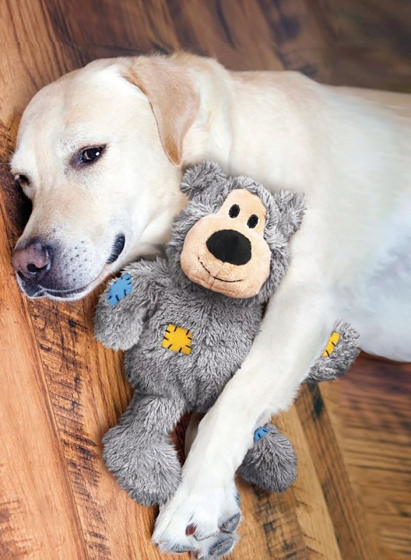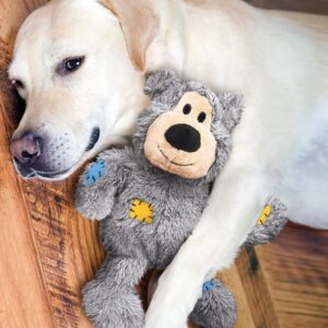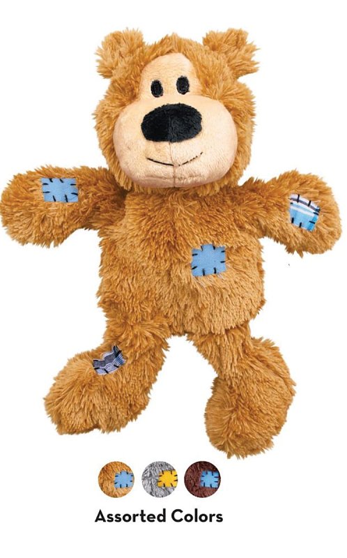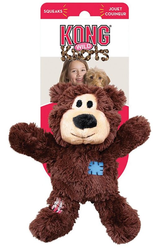 Kong Wild Knots are soft and cuddly on the outside while durable and strong on the inside. Wild Knots bears are sure to be a hit with dogs and their pet parents. Dogs love the knotted skeleton and the reinforced plush body provides extra durability. Kong Wild Knots have less stuffing for less mess and they squeak to entice play.Item Specifications