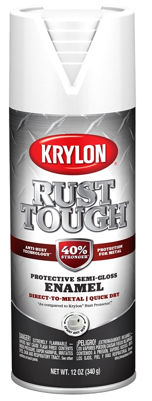 Home > Paint and Sundries > Paint and Stains > Spray Paint > Spray Paints Rust Inhibitor > Krylon Rust Tough K09266008 Enamel Spray Paint, Semi-Gloss, White, 12 oz, Can