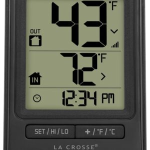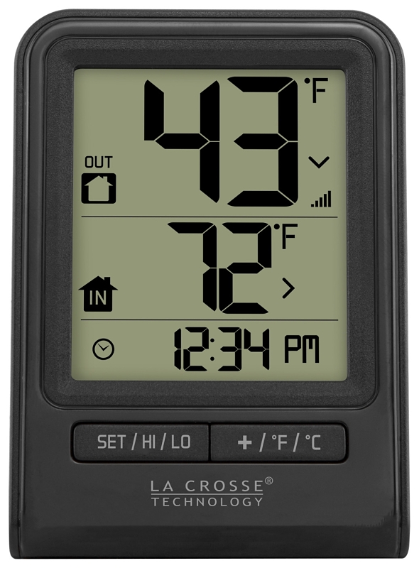 Provides you with precise real time indoor and outdoor temperature for your location. Features 12/24 hrs time, indoor temperature (F/C), wireless outdoor temperature (F/C), min/max indoor temperature readings (F/C), min/max outdoor temperature readings (F/C) and time alarm with snooze. Powered by 2 AAA batteries (not Included).Item Specifications