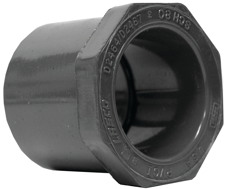 Lasco Reducing Bushing, Nominal Size: 2 x 1-1/2 in, Spigot x Slip Connection, Schedule Rating: SCH 80, PVC, 1-13/16 in LItem Specifications