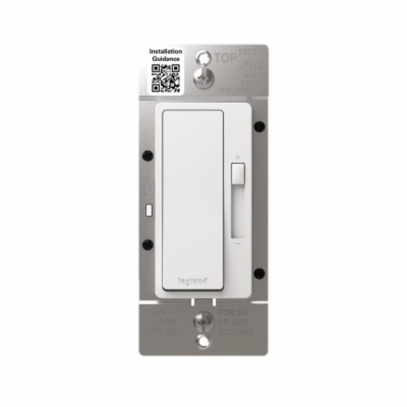 Upgrade your space with Legrand's newest LED dimmer switch in the Radiant⢠collection. Designed specifically for flicker-free control of today's dimmable LED light bulbs and fixtures (except 0 to 10 V LED drivers), this dimmer features advanced circuitry to offer a excellent lighting control experience that works right out of the box. The dimmer switch boasts a variety of user adjustments to adapt to a wide range of dimmable LED lights, eliminating unpleasant flickering, pop ons and more. As a part of the Radiant⢠collection, the advanced dimmer for LED lights also features clean lines and smooth control for a sophisticated touch. Pair with a screw-less Radiant⢠wall plate and other designer switches and outlets from the collection for a cohesive design throughout the home. Made exclusively for use with screw-less wall plates from the Radiant⢠collection.Item Specifications