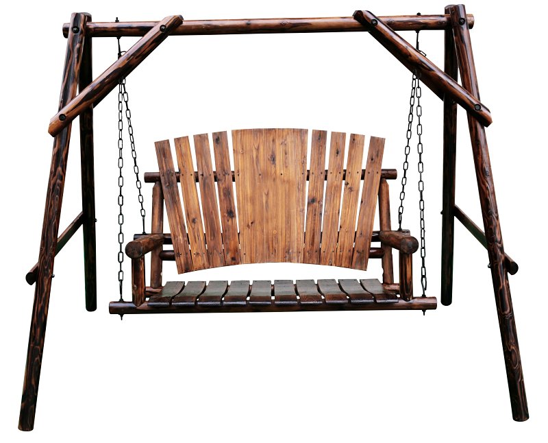 Leigh Country Char-Log Porch Swing, 86.6 in OAW, 67.9 in OAH, Overall Depth: 48.43 in, Includes: Chains and "A" Style Frame