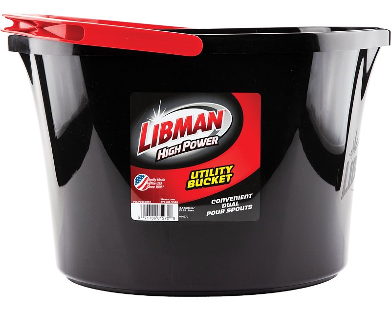 Libman Oval Utility Bucket, 3.5 gal Capacity, Ergonomic Handle, 10 in Width, 16 in Depth, 10-1/4 in Height, 15.81 in Diameter, Polymer, BlackItem Specifications