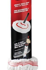 The grip n' click ratchet wrings more water. Mop head is machine washable. 3 red bands prevent tangling. Larger mop head covers more surface area. Resists odor causing bacteria.