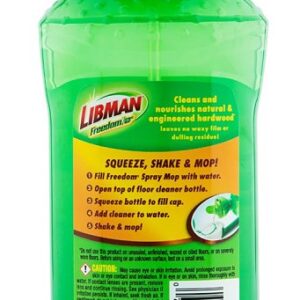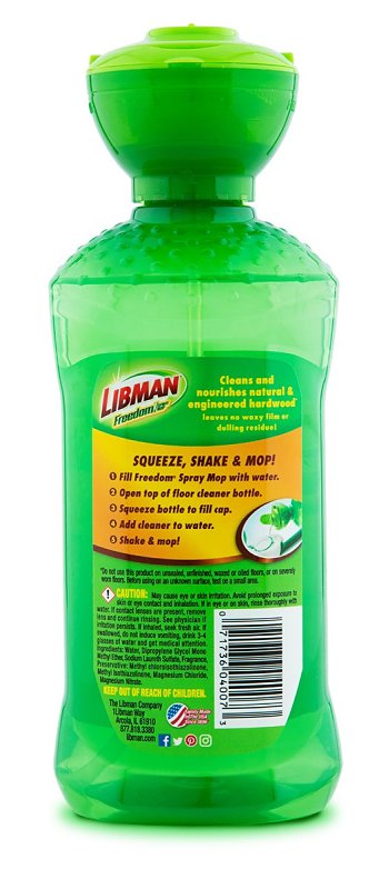 Make it easier to clean with your Libman Freedom spray mop with the Freedom concentrated hardwood floor cleaner. The lid perfectly measures the 1 oz of cleaning solution, making it easy to fill your Freedom® spray mop tank with the exact amount of cleaner and water. Specially blended to cut through and clean away dirt and grime on wood floors, it is blended to work with your Freedom spray mop. The fresh, citrus scent leaves your house smelling clean.Item Specifications