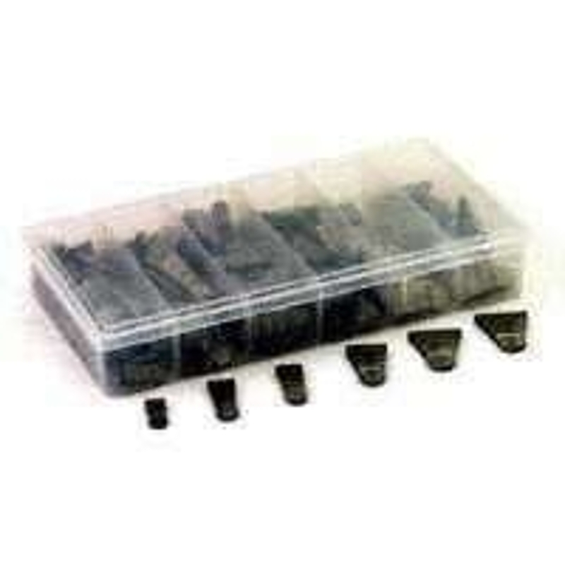 Assortment includes 252 pieces plus display box. Contains 12 LR1 and 12 LR2 round wedges, 36 #2, 36 #3, 36 #4, 36 # 5 and 12, #18 flat steel wedges plus 72 rivets.