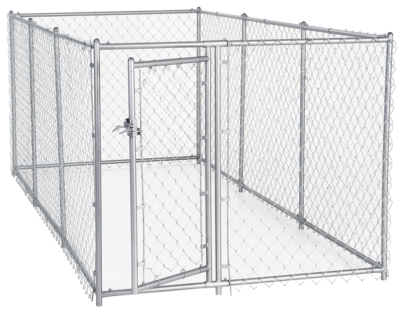 Lucky Dog Chain Link Kennel, Heavy-Duty, 5 ft Overall Length, 10 ft Overall Width, 4 ft Overall Height, Steel, Galvanized, Includes: Rust Resistant Galvanized Chain Link Roll, Powder-Coated Frame, Dog-safe Lockable Gate Latch, Steel Wire TiesItem Specifications