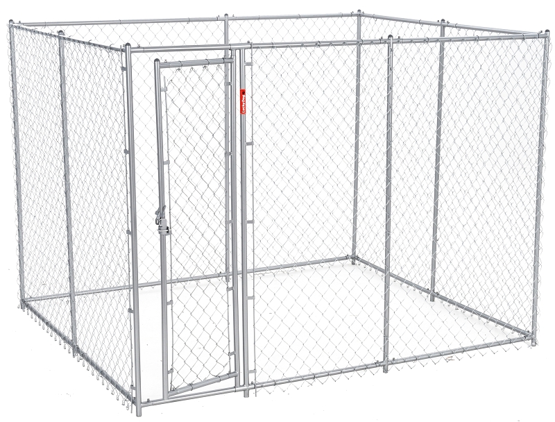 Lucky Dog Chain Link Kennel, 2-in-1, 6-1/2, 10 ft Overall Length, 5, 8 ft Overall Width, 6 ft Overall Height, Steel, Galvanized, Includes: Rust Resistant Galvanized Chain Link Roll, Powder-Coated Frame, Dog-safe Lockable Gate Latch, Steel Wire TiesItem Specifications