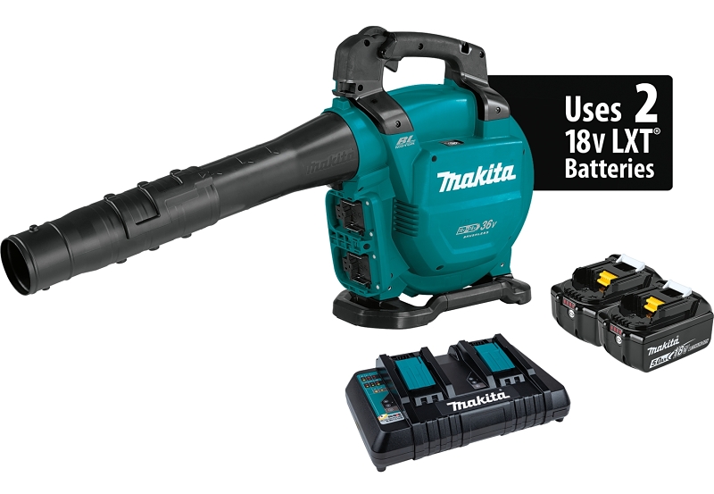 Includes(2) BL1850B 18 V LXT Lithium-Ion 5 Ah Batteries (1) DC18RD 18 V LXT Lithium-Ion Dual-Port Charger (1) 183R06-2 XBU04 Blower Nozzle (1) 459798-0 3-Stage Telescoping Blower Nozzle