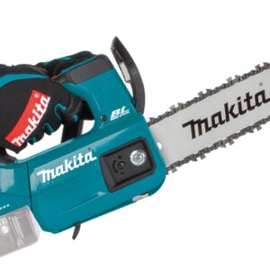 There is growing demand for cordless alternatives to gas-powered outdoor power equipment. Makita is meeting demand with an expanding line of cordless OPE, including the 18 V LXT® Brushless 10 in top handle chainsaw (model XCU06Z). With zero emissions, lower noise, and considerably less maintenance, the XCU06Z is a welcome solution for cutting and trimming applications, and the compact top-handle design makes it ideal for the professional tree care industry. Powered by one 18 V LXT® battery (sold separately) for maximum power, speed and runtime, the XCU06Z uses the strongly-preferred 18 V battery platform. And with the efficient Makita outer rotor brushless motor with direct-drive system, users get high-power efficiency that is equivalent to a gas chainsaw. Powered by one 18 V LXT® battery (sold separately) for maximum power, speed and runtime, the XCU06Z uses the strongly-preferred 18 V battery platform. And with the efficient Makita outer rotor brushless motor with direct-drive system, users get high-power efficiency that is equivalent to a gas chainsaw. The XCU06Z has a variable-speed trigger and high-chain speed (0 to 4720 fpm) for increased cutting speed, with torque boost mode for cutting dense material. It has zero emissions and reduced maintenance: there's no engine oil to change, no spark plug to replace, and no air filter or muffler to clean. And there's no need to drain the fuel for storage. Simply load the 18 V LXT® Lithium-Ion battery (sold separately), and the saw is ready to use. Convenience features include adjustable automatic chain lubrication, built-on lock-off lever to help prevent the chain from accidentally engaging, an electric brake for maximum productivity, and more. It's part of Makita's expanding 18 V Lithium-Ion system, the world's largest cordless tool system powered by 18 V Lithium-Ion slide-style batteries. Makita 18 V Lithium-Ion batteries have the fastest charge times in their categories, so they spend more time working and less time sitting on the charger. For improved tool performance and extended battery life, Makita created Star Protection Computer Controlsâ¢. Star Protection is communication technology that allows the Star Protection-equipped tool and battery to exchange data in real time and monitor conditions during use to protect against overloading, over discharging and overheating. For increased versatility, the tool can also be powered by Makita 18 V LXT® and compact Lithium-Ion batteries with the star symbol on the battery indicating star protection inside.Item Specifications