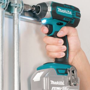The Makita 18 V LXT® Lithium-Ion cordless impact driver delivers power and speed in a compact size for a full range of driving and fastening tasks. It's part of Makita's expanding 18 V Lithium-Ion Series, the world's largest cordless tool line-up powered by an 18 V Lithium-Ion slide-style battery. Makita 18 V Lithium-Ion batteries have the fastest charge times in their categories, so they spend more time working and less time sitting on the charger. For improved tool performance and extended battery life, Makita created Star Protection Computer Controlsâ¢. Star protection is communication technology that allows the star protection-equipped tool and battery to exchange data in real time and monitor conditions during use to protect against overloading, over-discharging and overheating. For increased versatility, the tool can also be powered by Makita 18 V LXT® and compact Lithium-Ion batteries with the star symbol on the battery indicating star protection inside. The XDT11Z features a Makita built four-pole motor with variable speed that delivers 1460 in-lb of maximum torque. At only 5-3/8 in L and 2.8 lb, it has a compact and ergonomic design with less weight for reduced operator fatigue and a rubberized soft grip for increased comfort on the job. The built in LED light illuminates the job area for applications in dark spaces and close quarters.Item Specifications